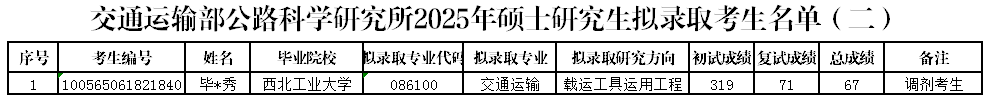 一考生因个人原因自愿放弃拟录取资格,现将拟补录考生名单公示如下。对公示的拟录取考生名单有异议的,应于本公示之日起7日内提出(2025年4月30日-5月6日),逾期不再受理。异议提出应采用书面方式,并注明真实姓名、联系电话等。
